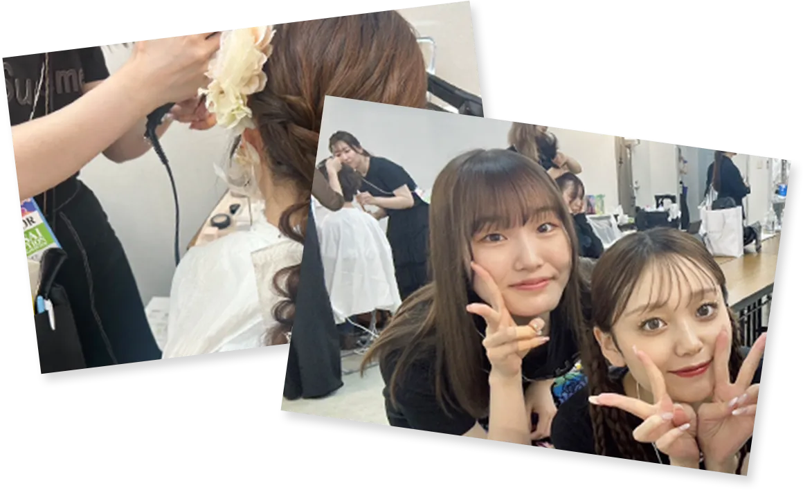 年に2回関西コレクションのバックステージに参加しています!モデルや有名YouTuber、TikTokerのヘアメイクを担当できる貴重な機会です。