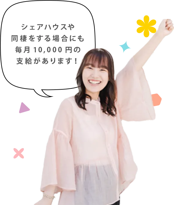 1人暮らしの方には毎月2万円の住宅手当を支給。枚方市の家賃相場は約5万円のため、実質3万円で一人暮らしが可能に!